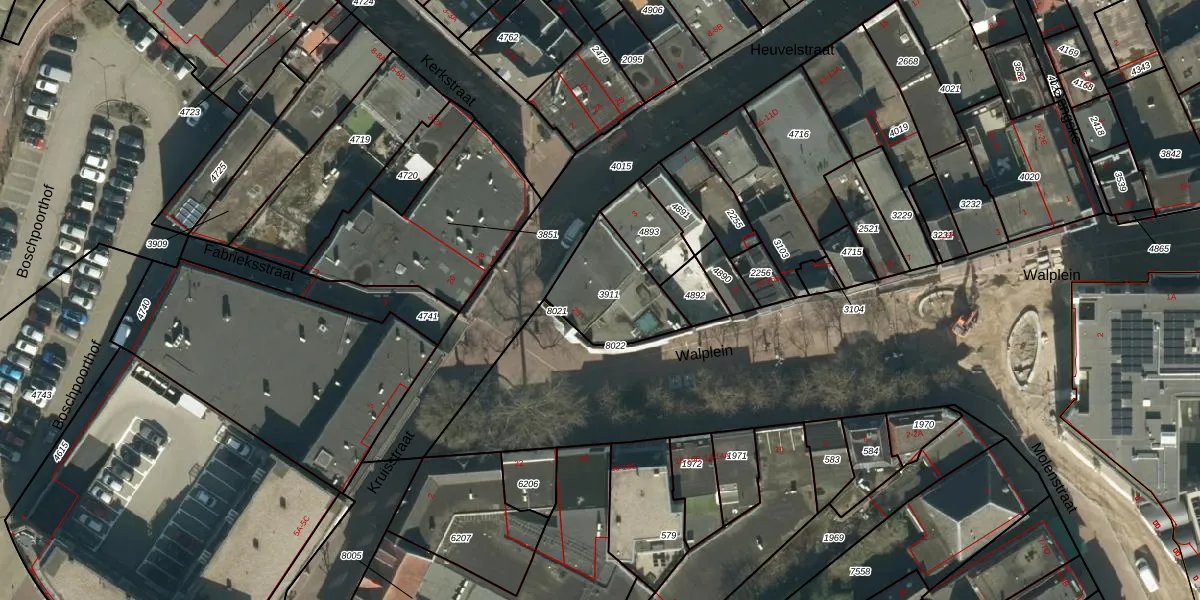 Het adres is gelegen op perceel 3911 in de sectie A en de kadastrale gemeente Oss. De kadastrale aanduiding is aldus OSS00-A-3911. De gemiddelde perceelgrootte in Oss is 2393,92 m². Dit perceel is kleiner: de perceeloppervlakte bedraagt 287 m². De grootste perceeloppervlakte in de kadastrale gemeente is 36,1 ha. De kleinste oppervlakte bedraagt 0 m². Op het perceel zijn 19 adressen aanwezig. De huidige grenzen van het perceel zijn digitaal in de Basisregistratie Kadaster (BRK) geregistreerd op 11-07-2024.