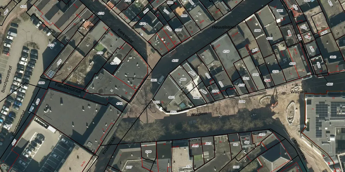 Het adres is gelegen op perceel 3911 in de sectie A en de kadastrale gemeente Oss. De kadastrale aanduiding is aldus OSS00-A-3911. De gemiddelde perceelgrootte in Oss is 2394,22 m². Dit perceel is kleiner: de perceeloppervlakte bedraagt 287 m². De grootste perceeloppervlakte in de kadastrale gemeente is 36,1 ha. De kleinste oppervlakte bedraagt 0 m². Op het perceel liggen in totaal 19 adressen. In de Basisregistratie Kadaster (BRK) werden de grenzen van het perceel geregistreerd op 11-07-2024.