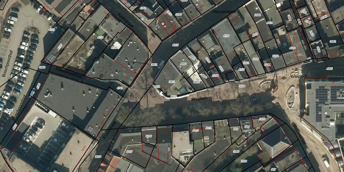 Het adres is gelegen op perceel 3911 in de sectie A en de kadastrale gemeente Oss. De kadastrale aanduiding is aldus OSS00-A-3911. De gemiddelde perceelgrootte in Oss is 2393,92 m². Dit perceel is kleiner: de perceeloppervlakte bedraagt 287 m². De grootste perceeloppervlakte in de kadastrale gemeente is 36,1 ha. De kleinste oppervlakte bedraagt 0 m². Op het perceel liggen in totaal 19 adressen. De laatste wijziging in het de Basisregistratie Kadaster (BRK) was op 11-07-2024.