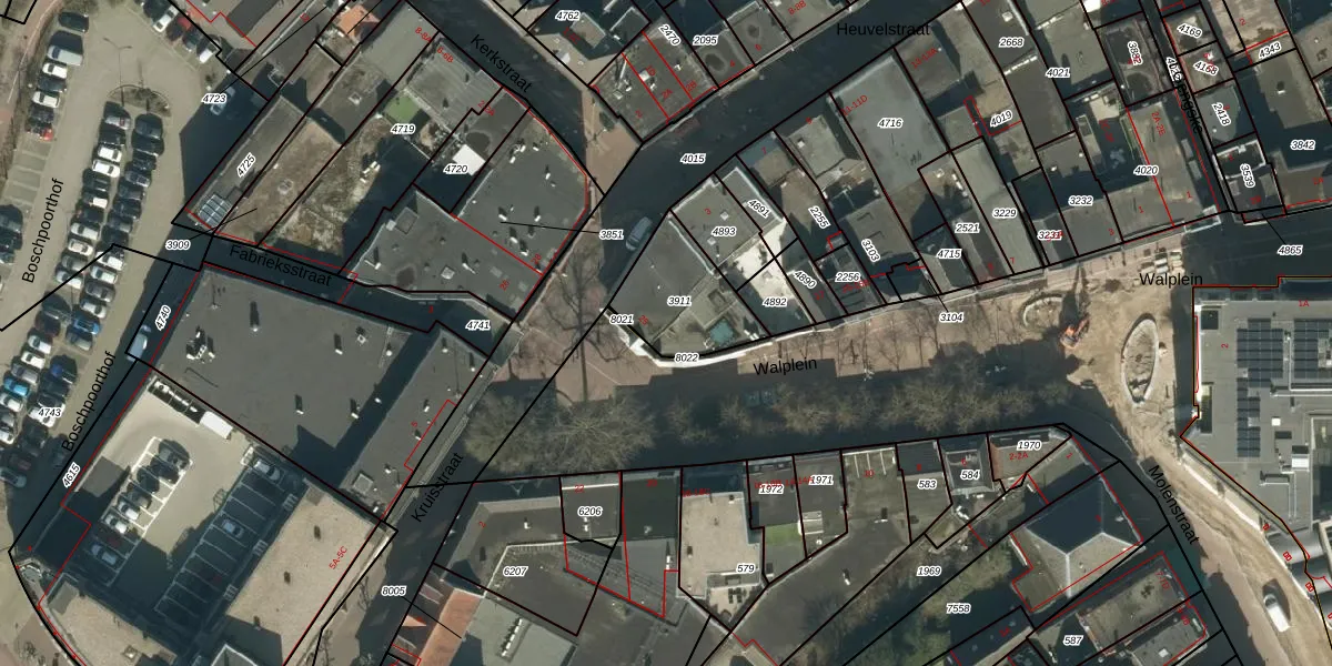 Het adres is gelegen op perceel 3911 in de sectie A en de kadastrale gemeente Oss. De kadastrale aanduiding is aldus OSS00-A-3911. De gemiddelde perceelgrootte in Oss is 2394,22 m². Dit perceel is kleiner: de perceeloppervlakte bedraagt 287 m². De grootste perceeloppervlakte in de kadastrale gemeente is 36,1 ha. De kleinste oppervlakte bedraagt 0 m². Op het perceel liggen in totaal 19 adressen. De laatste wijziging in het de Basisregistratie Kadaster (BRK) was op 11-07-2024.