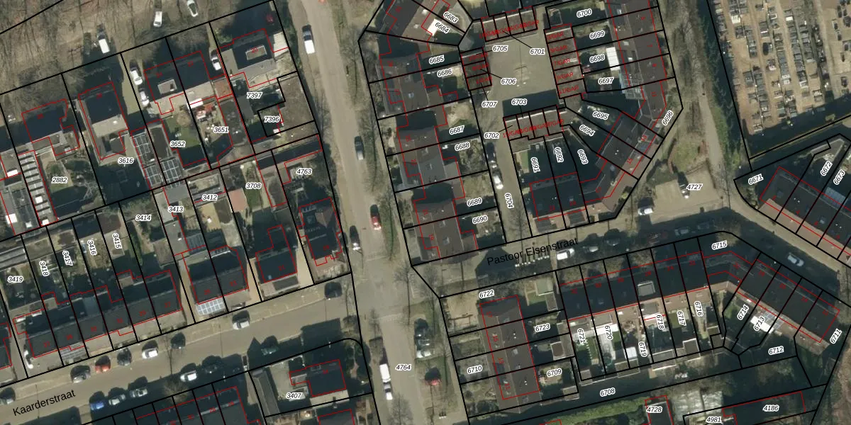 Gebruik de zoekbalk of klik op een perceel voor informatie over de adressen binnen dit perceel.
