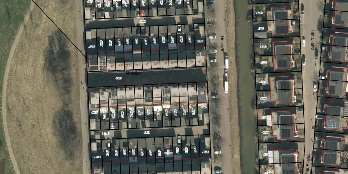 Het perceel waarop Hofvijver 34 staat heeft een oppervlakte van 127 m². Dit is een middelgroot perceel. De perceeloppervlakte wordt geregistreerd door het Kadaster. Gedetailleerde informatie over de maten van dit perceel kunt u vinden in het rapport Kadastrale kaart met maatvoering van Hofvijver 34.