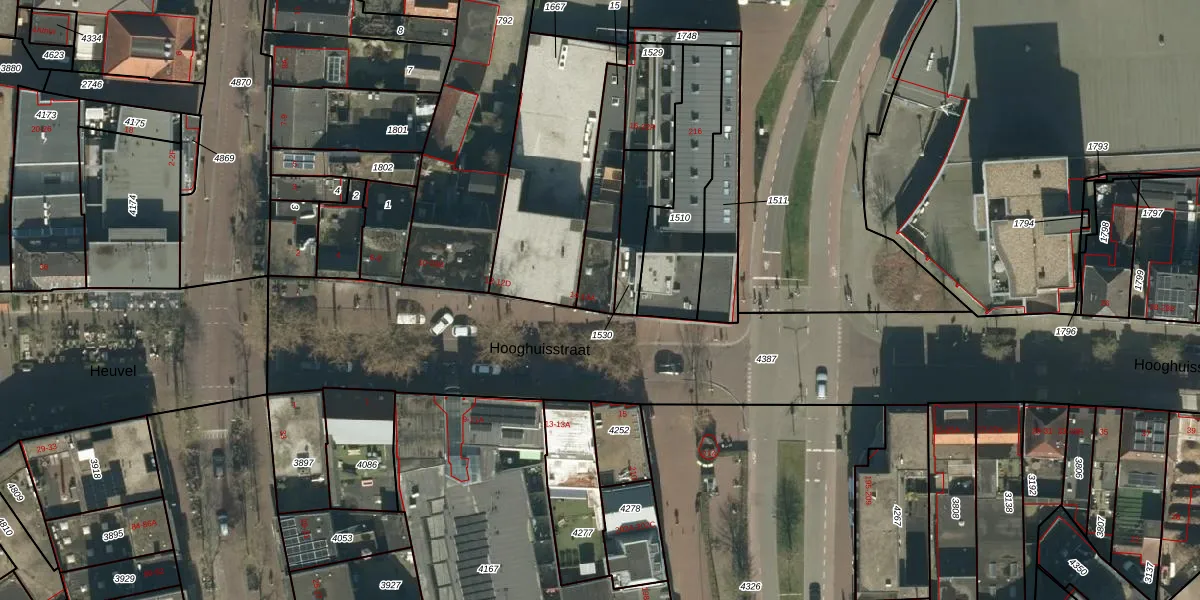 Hooghuisstraat 14 is gelegen op kadastraal perceel OSS00G15. Deze kadastrale aanduiding is uniek en wordt gebruikt door het Kadaster om eigendomsrechten en andere zakelijke rechten vast te leggen. Het perceel maakt onderdeel uit van de kadastrale gemeente Oss.