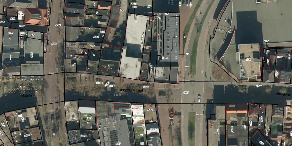 Hooghuisstraat 14-A is gelegen op kadastraal perceel OSS00G15. Deze kadastrale aanduiding is uniek en wordt gebruikt door het Kadaster om eigendomsrechten en andere zakelijke rechten vast te leggen. Het perceel maakt onderdeel uit van de kadastrale gemeente Oss.