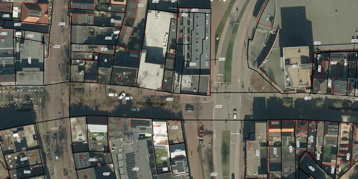 Hooghuisstraat 16 is gelegen op kadastraal perceel OSS00G1530. Deze kadastrale aanduiding is uniek en wordt gebruikt door het Kadaster om eigendomsrechten en andere zakelijke rechten vast te leggen. Het perceel maakt onderdeel uit van de kadastrale gemeente Oss.
