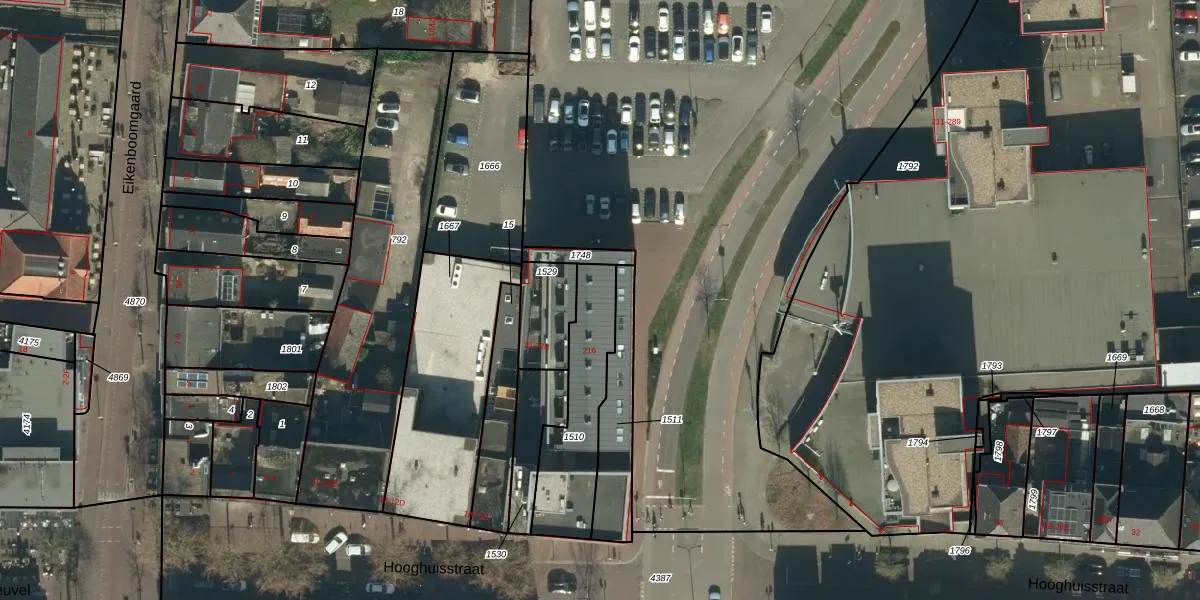Hooghuisstraat 18-G is gelegen op kadastraal perceel OSS00G1510. Deze kadastrale aanduiding is uniek en wordt gebruikt door het Kadaster om eigendomsrechten en andere zakelijke rechten vast te leggen. Het perceel maakt onderdeel uit van de kadastrale gemeente Oss.