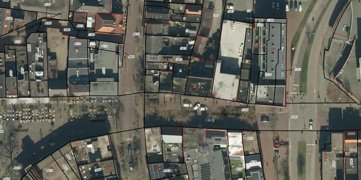 Hooghuisstraat 8 is gelegen op kadastraal perceel OSS00G1. Deze kadastrale aanduiding is uniek en wordt gebruikt door het Kadaster om eigendomsrechten en andere zakelijke rechten vast te leggen. Het perceel maakt onderdeel uit van de kadastrale gemeente Oss.