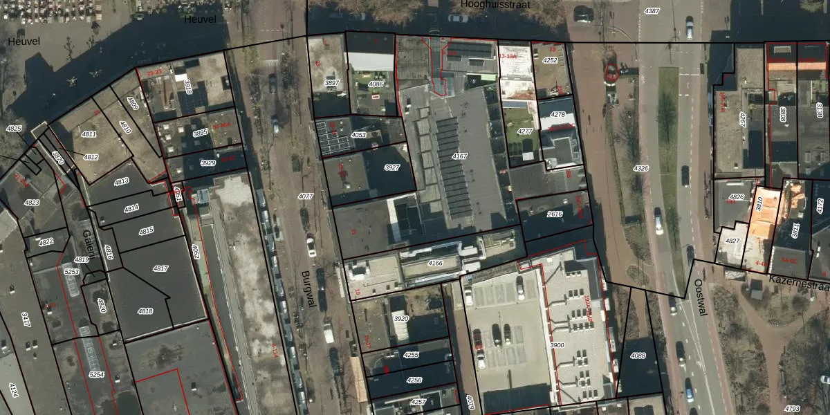 Hooghuisstraat 9-G is gelegen op kadastraal perceel OSS00A4167. Deze kadastrale aanduiding is uniek en wordt gebruikt door het Kadaster om eigendomsrechten en andere zakelijke rechten vast te leggen. Het perceel maakt onderdeel uit van de kadastrale gemeente Oss.