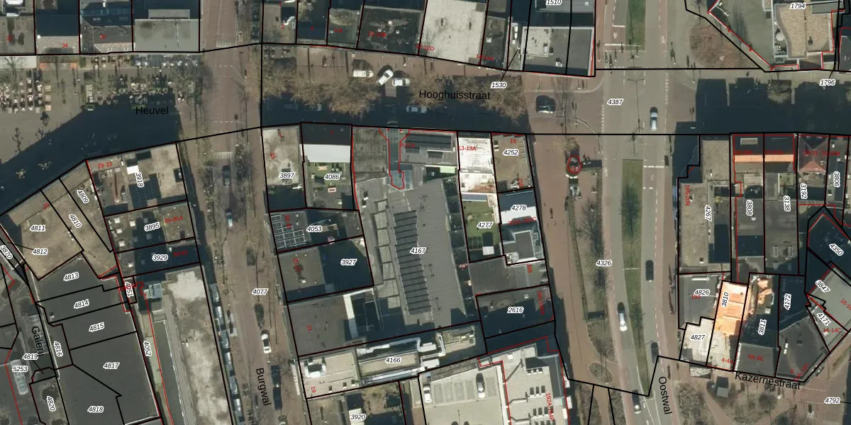 Hooghuisstraat 9-L is gelegen op kadastraal perceel OSS00A4167. Deze kadastrale aanduiding is uniek en wordt gebruikt door het Kadaster om eigendomsrechten en andere zakelijke rechten vast te leggen. Het perceel maakt onderdeel uit van de kadastrale gemeente Oss.
