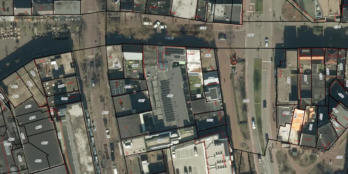 Hooghuisstraat 9-M is gelegen op kadastraal perceel OSS00A4167. Deze kadastrale aanduiding is uniek en wordt gebruikt door het Kadaster om eigendomsrechten en andere zakelijke rechten vast te leggen. Het perceel maakt onderdeel uit van de kadastrale gemeente Oss.