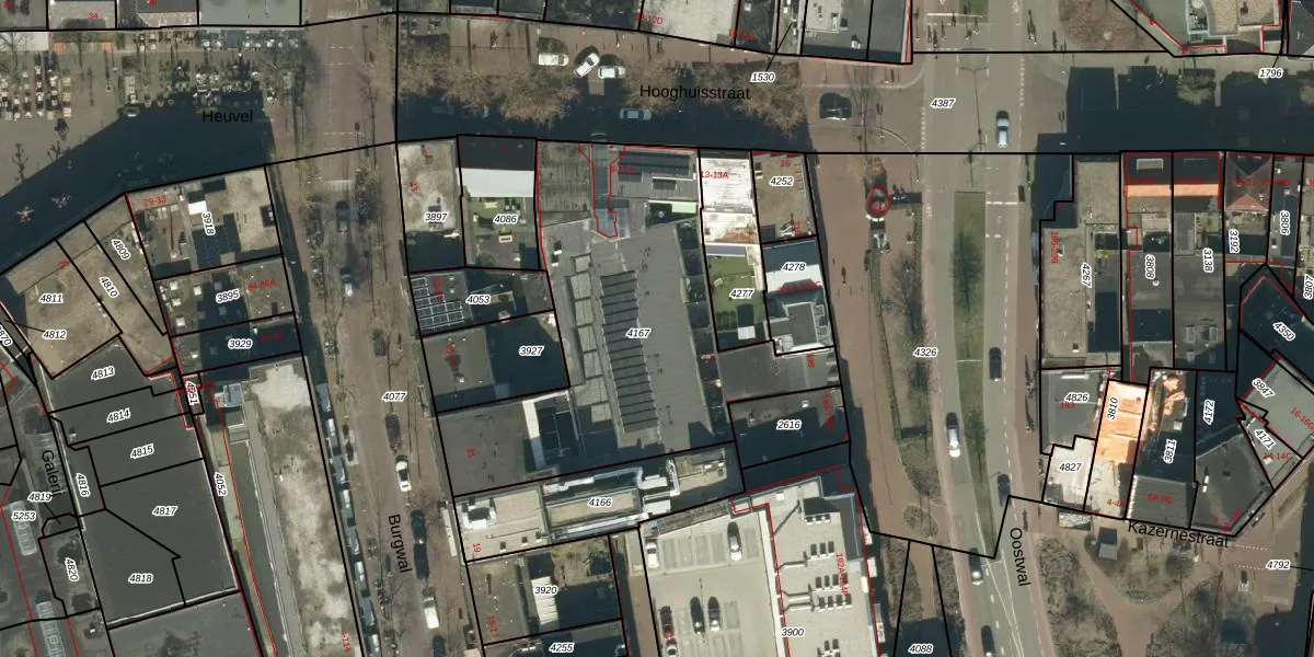 Hooghuisstraat 9-N is gelegen op kadastraal perceel OSS00A4167. Deze kadastrale aanduiding is uniek en wordt gebruikt door het Kadaster om eigendomsrechten en andere zakelijke rechten vast te leggen. Het perceel maakt onderdeel uit van de kadastrale gemeente Oss.