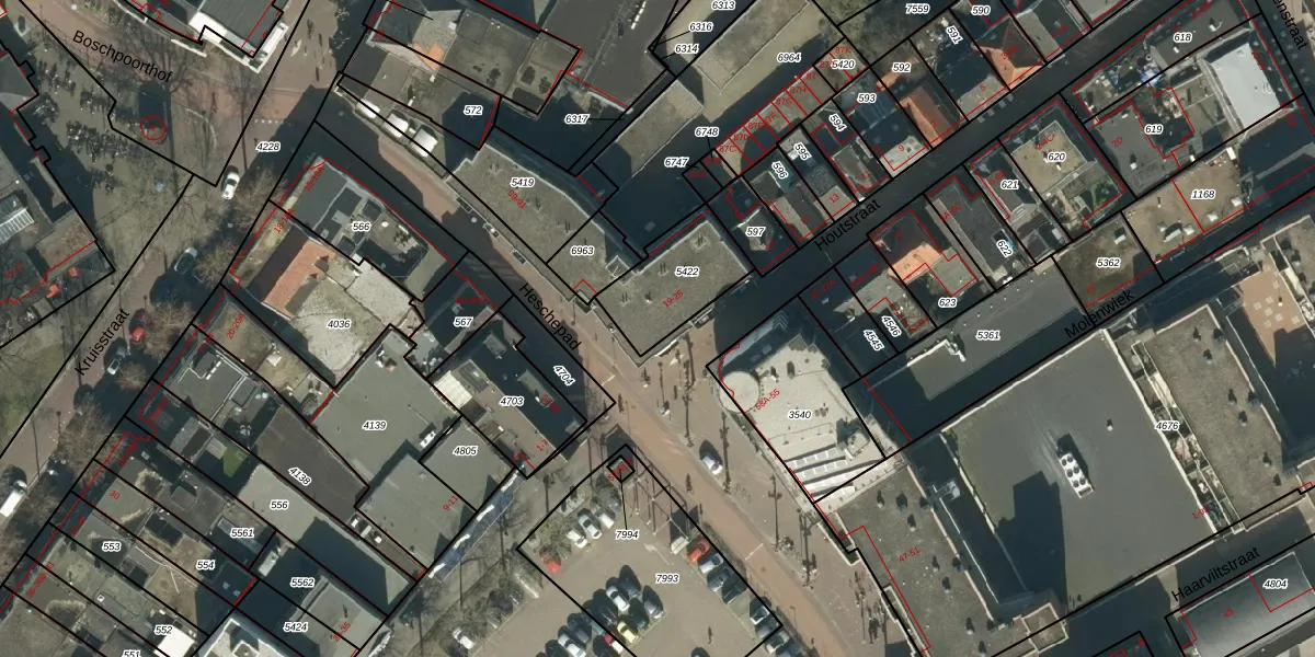 Houtstraat 25 is gelegen op kadastraal perceel OSS00E5422. Deze kadastrale aanduiding is uniek en wordt gebruikt door het Kadaster om eigendomsrechten en andere zakelijke rechten vast te leggen. Het perceel maakt onderdeel uit van de kadastrale gemeente Oss.