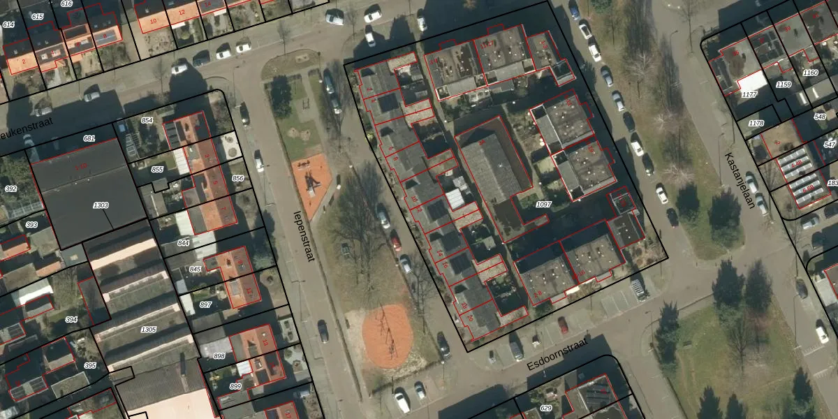 Het perceel waarop Iepenstraat 12 staat heeft een oppervlakte van 3756 m². Dit is een zeer groot perceel. De perceeloppervlakte wordt geregistreerd door het Kadaster. Gedetailleerde informatie over de maten van dit perceel kunt u vinden in het rapport Kadastrale kaart met maatvoering van Iepenstraat 12.