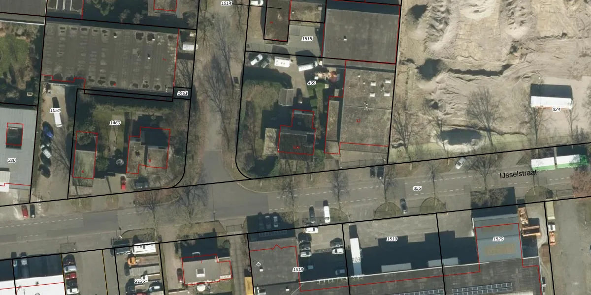 Het perceel waarop IJsselstraat 12-A staat heeft een oppervlakte van 2002 m². Dit is een zeer groot perceel. De perceeloppervlakte wordt geregistreerd door het Kadaster. Gedetailleerde informatie over de maten van dit perceel kunt u vinden in het rapport Kadastrale kaart met maatvoering van IJsselstraat 12-A.