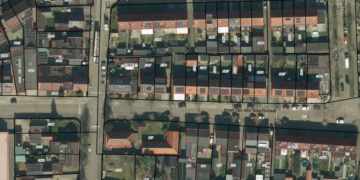 Het perceel waarop Iman van den Boschstraat 14 staat heeft een oppervlakte van 1736 m². Dit is een zeer groot perceel. De perceeloppervlakte wordt geregistreerd door het Kadaster. Gedetailleerde informatie over de maten van dit perceel kunt u vinden in het rapport Kadastrale kaart met maatvoering van Iman van den Boschstraat 14.