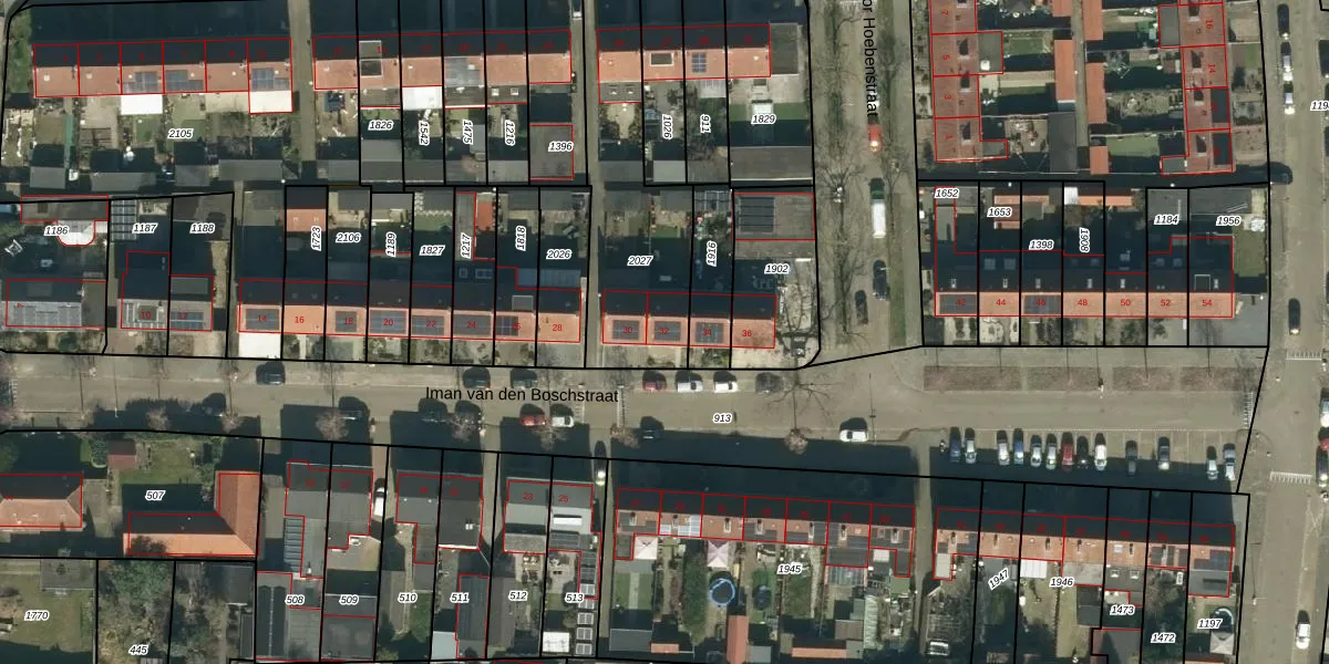 Het perceel waarop Iman van den Boschstraat 32 staat heeft een oppervlakte van 682 m². Dit is een groot perceel. De perceeloppervlakte wordt geregistreerd door het Kadaster. Gedetailleerde informatie over de maten van dit perceel kunt u vinden in het rapport Kadastrale kaart met maatvoering van Iman van den Boschstraat 32.