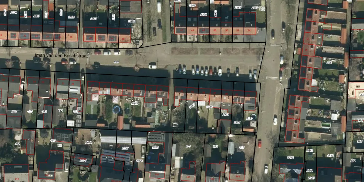 Het perceel waarop Iman van den Boschstraat 41 staat heeft een oppervlakte van 1682 m². Dit is een zeer groot perceel. De perceeloppervlakte wordt geregistreerd door het Kadaster. Gedetailleerde informatie over de maten van dit perceel kunt u vinden in het rapport Kadastrale kaart met maatvoering van Iman van den Boschstraat 41.