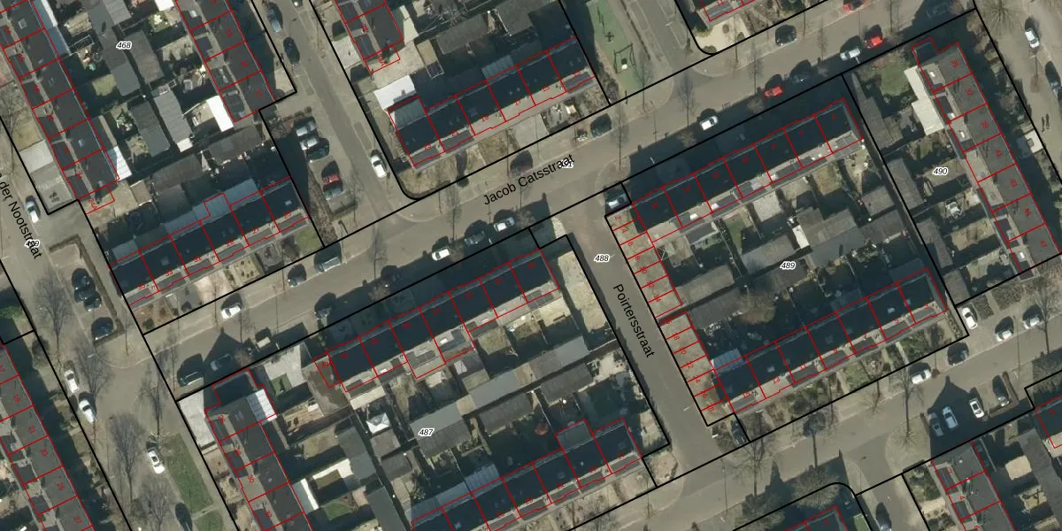 Jacob Catsstraat 18 is gelegen op kadastraal perceel OSS00L487. Deze kadastrale aanduiding is uniek en wordt gebruikt door het Kadaster om eigendomsrechten en andere zakelijke rechten vast te leggen. Het perceel maakt onderdeel uit van de kadastrale gemeente Oss.