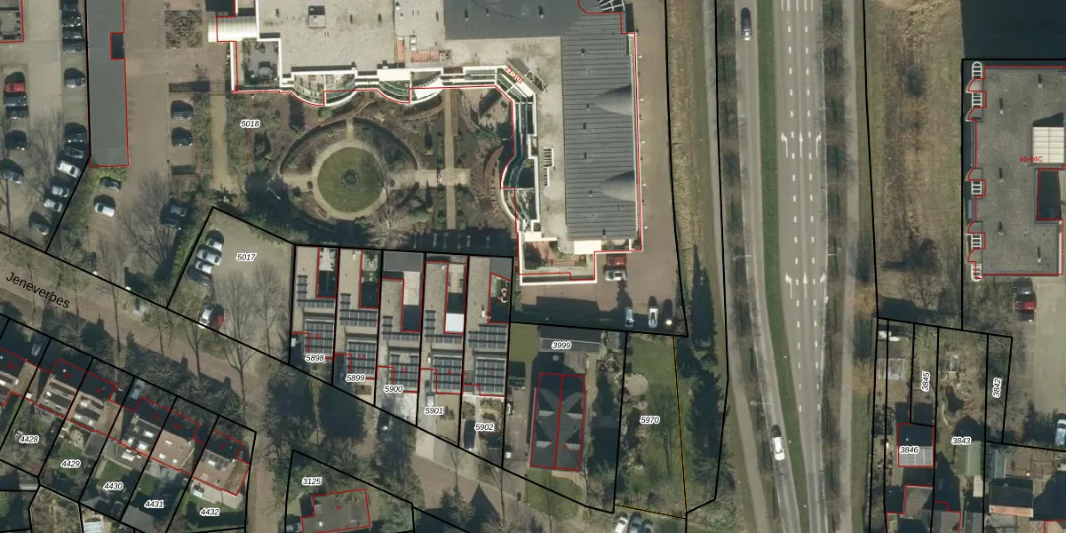 Het perceel waarop Jeneverbes 31-GAR2 staat heeft een oppervlakte van 7234 m². Dit is een zeer groot perceel. De perceeloppervlakte wordt geregistreerd door het Kadaster. Gedetailleerde informatie over de maten van dit perceel kunt u vinden in het rapport Kadastrale kaart met maatvoering van Jeneverbes 31-GAR2.