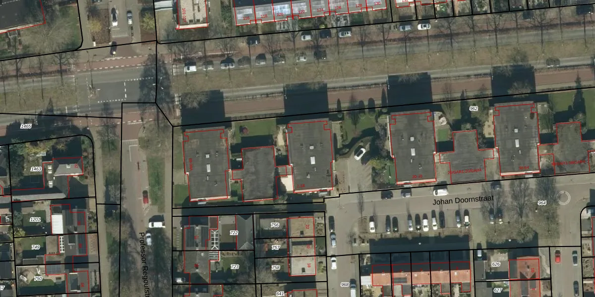 Het perceel waarop Johan Doornstraat 10 staat heeft een oppervlakte van 5645 m². Dit is een zeer groot perceel. De perceeloppervlakte wordt geregistreerd door het Kadaster. Gedetailleerde informatie over de maten van dit perceel kunt u vinden in het rapport Kadastrale kaart met maatvoering van Johan Doornstraat 10.