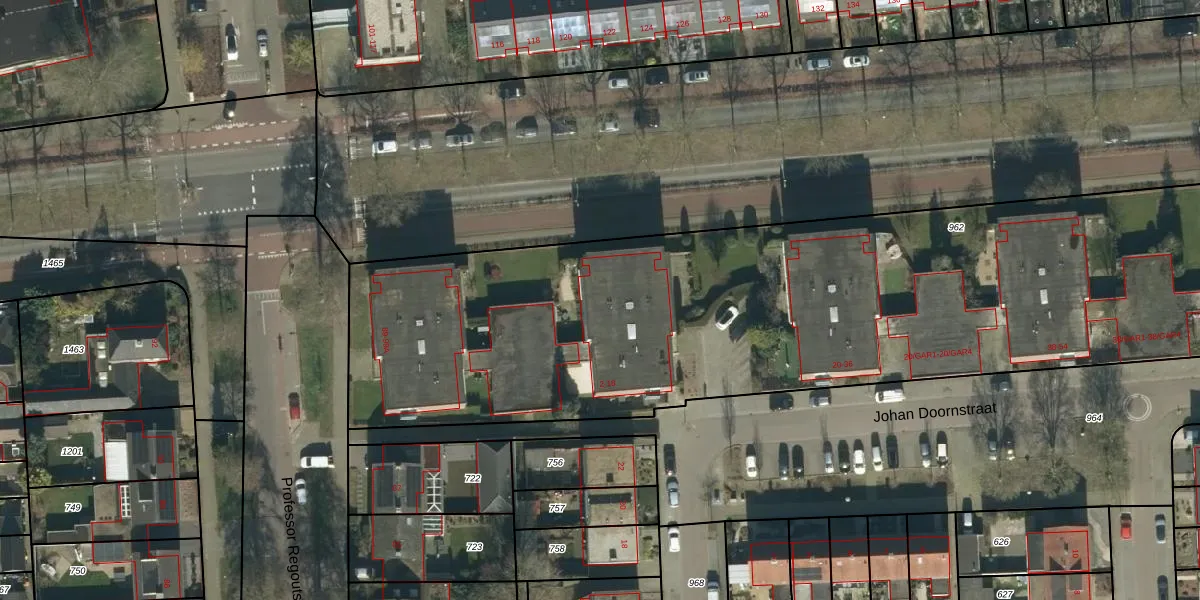 Het perceel waarop Johan Doornstraat 16 staat heeft een oppervlakte van 5645 m². Dit is een zeer groot perceel. De perceeloppervlakte wordt geregistreerd door het Kadaster. Gedetailleerde informatie over de maten van dit perceel kunt u vinden in het rapport Kadastrale kaart met maatvoering van Johan Doornstraat 16.