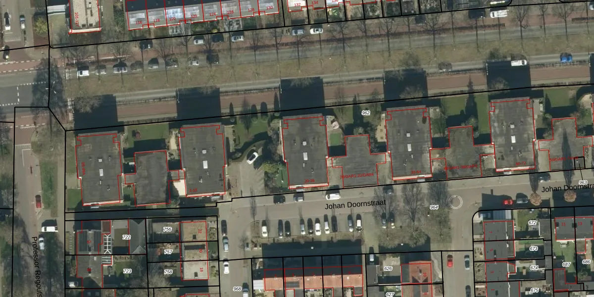 Het perceel waarop Johan Doornstraat 24 staat heeft een oppervlakte van 5645 m². Dit is een zeer groot perceel. De perceeloppervlakte wordt geregistreerd door het Kadaster. Gedetailleerde informatie over de maten van dit perceel kunt u vinden in het rapport Kadastrale kaart met maatvoering van Johan Doornstraat 24.
