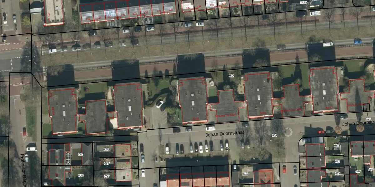 Het perceel waarop Johan Doornstraat 36 staat heeft een oppervlakte van 5645 m². Dit is een zeer groot perceel. De perceeloppervlakte wordt geregistreerd door het Kadaster. Gedetailleerde informatie over de maten van dit perceel kunt u vinden in het rapport Kadastrale kaart met maatvoering van Johan Doornstraat 36.