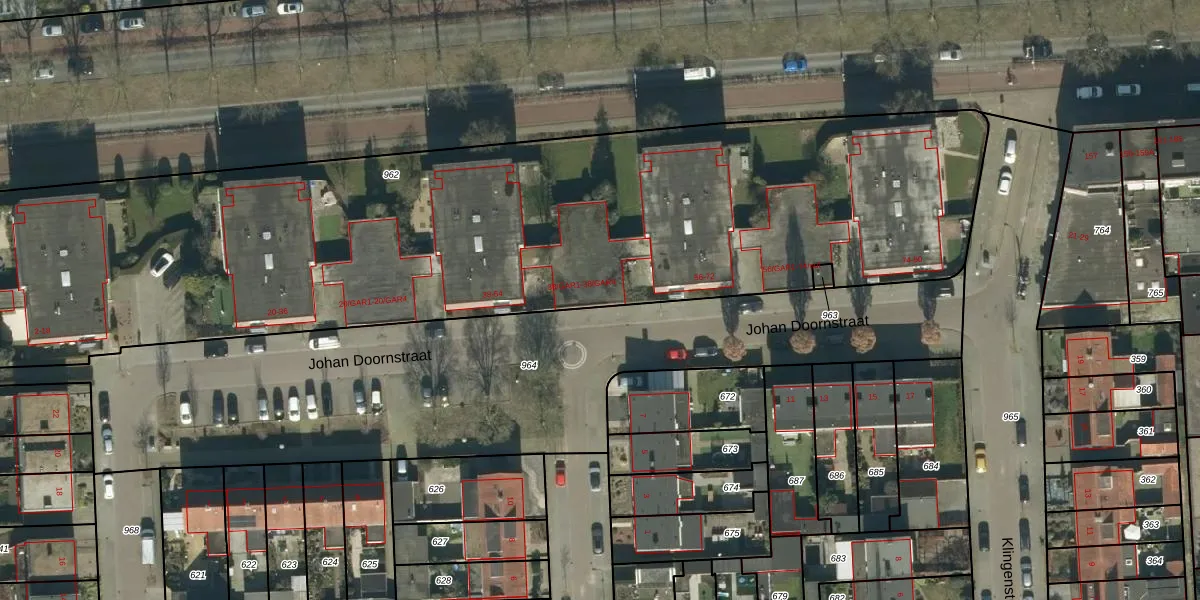 Het perceel waarop Johan Doornstraat 38-GAR3 staat heeft een oppervlakte van 5645 m². Dit is een zeer groot perceel. De perceeloppervlakte wordt geregistreerd door het Kadaster. Gedetailleerde informatie over de maten van dit perceel kunt u vinden in het rapport Kadastrale kaart met maatvoering van Johan Doornstraat 38-GAR3.