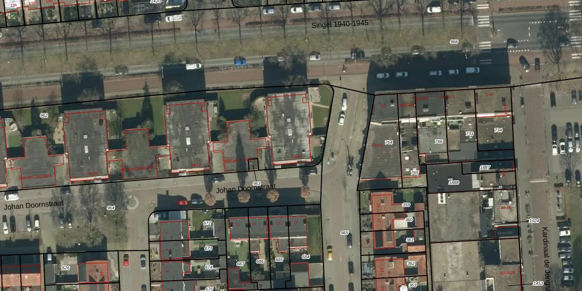 Het perceel waarop Johan Doornstraat 80 staat heeft een oppervlakte van 5645 m². Dit is een zeer groot perceel. De perceeloppervlakte wordt geregistreerd door het Kadaster. Gedetailleerde informatie over de maten van dit perceel kunt u vinden in het rapport Kadastrale kaart met maatvoering van Johan Doornstraat 80.
