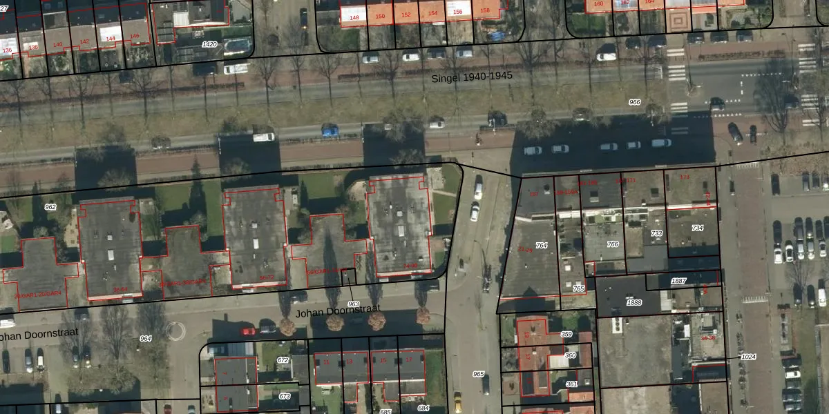 Het perceel waarop Johan Doornstraat 90 staat heeft een oppervlakte van 5645 m². Dit is een zeer groot perceel. De perceeloppervlakte wordt geregistreerd door het Kadaster. Gedetailleerde informatie over de maten van dit perceel kunt u vinden in het rapport Kadastrale kaart met maatvoering van Johan Doornstraat 90.