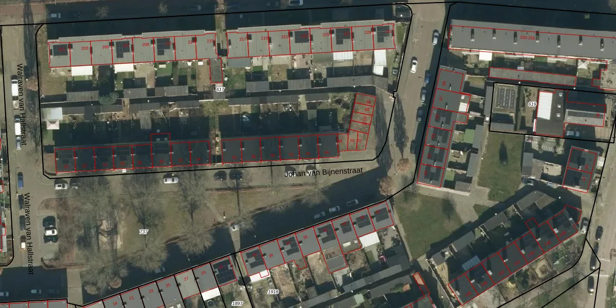 Het perceel waarop Johan van Bijnenstraat 44 staat heeft een oppervlakte van 5775 m². Dit is een zeer groot perceel. De perceeloppervlakte wordt geregistreerd door het Kadaster. Gedetailleerde informatie over de maten van dit perceel kunt u vinden in het rapport Kadastrale kaart met maatvoering van Johan van Bijnenstraat 44.