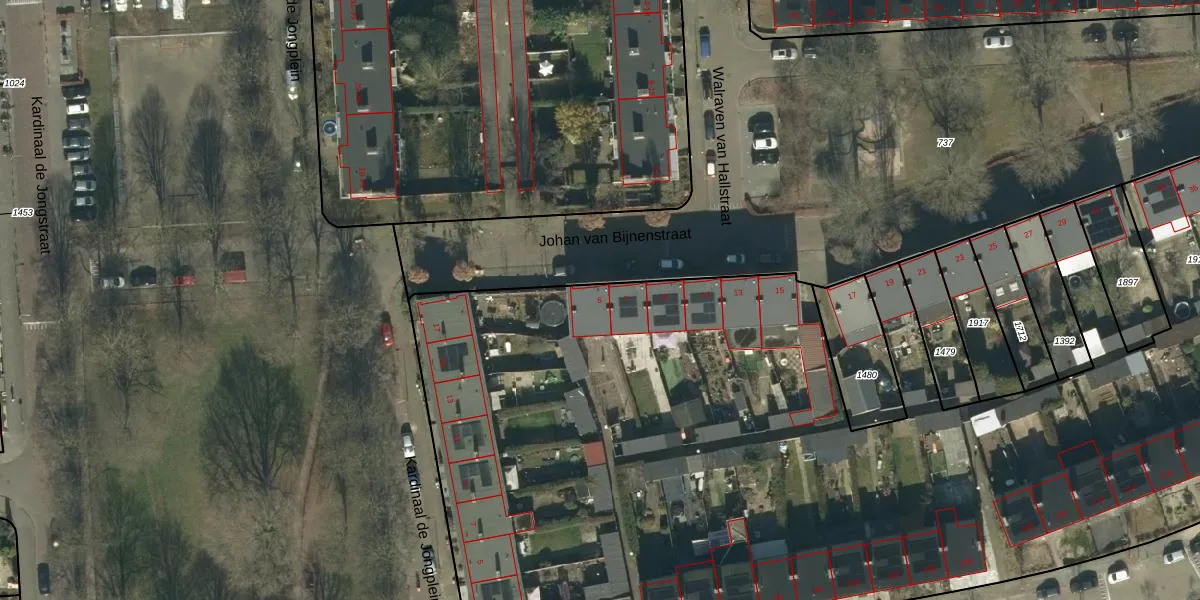Het perceel waarop Johan van Bijnenstraat 5 staat heeft een oppervlakte van 1,4 ha. Dit is een zeer groot perceel. De perceeloppervlakte wordt geregistreerd door het Kadaster. Gedetailleerde informatie over de maten van dit perceel kunt u vinden in het rapport Kadastrale kaart met maatvoering van Johan van Bijnenstraat 5.
