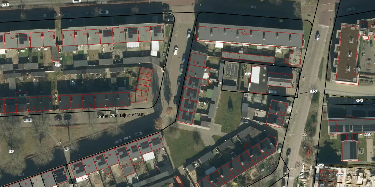Johan van Bijnenstraat 53 is gelegen op kadastraal perceel OSS00G1918. Deze kadastrale aanduiding is uniek en wordt gebruikt door het Kadaster om eigendomsrechten en andere zakelijke rechten vast te leggen. Het perceel maakt onderdeel uit van de kadastrale gemeente Oss.