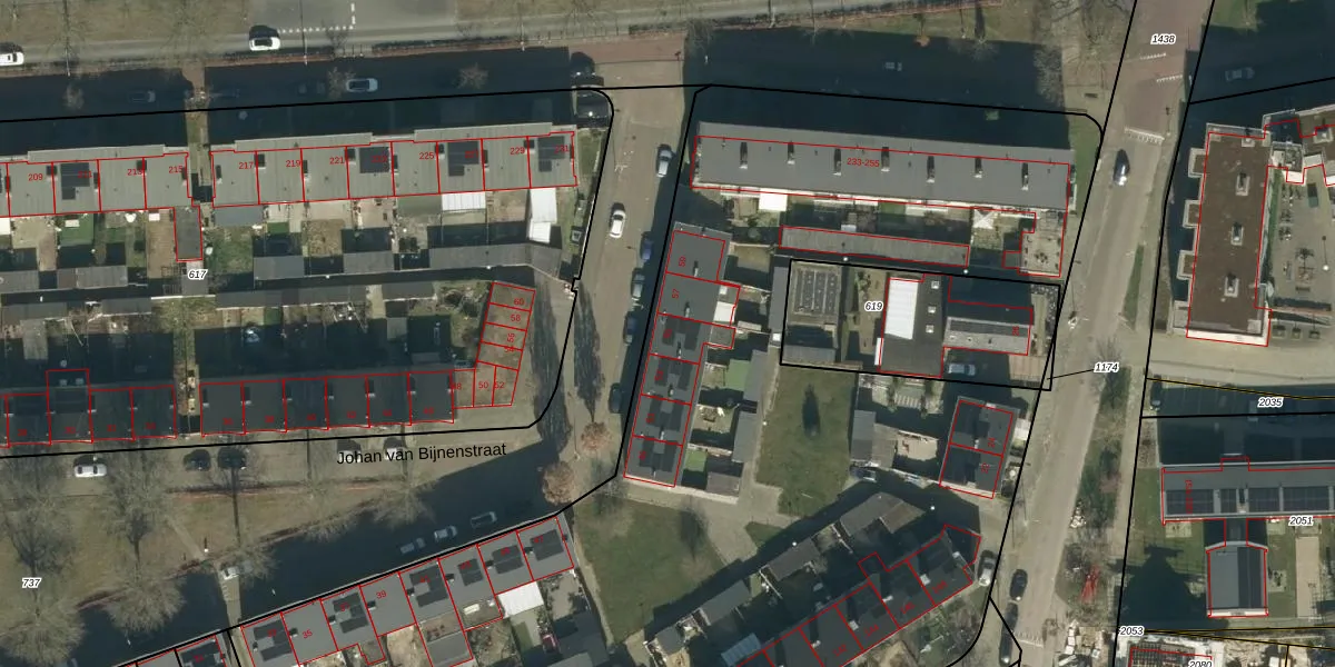 Het perceel waarop Johan van Bijnenstraat 55 staat heeft een oppervlakte van 1,4 ha. Dit is een zeer groot perceel. De perceeloppervlakte wordt geregistreerd door het Kadaster. Gedetailleerde informatie over de maten van dit perceel kunt u vinden in het rapport Kadastrale kaart met maatvoering van Johan van Bijnenstraat 55.