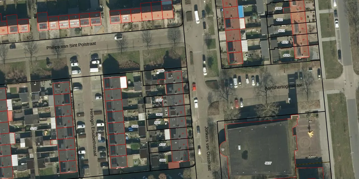 Het perceel waarop Jonkers van Ossstraat 14 staat heeft een oppervlakte van 1614 m². Dit is een zeer groot perceel. De perceeloppervlakte wordt geregistreerd door het Kadaster. Gedetailleerde informatie over de maten van dit perceel kunt u vinden in het rapport Kadastrale kaart met maatvoering van Jonkers van Ossstraat 14.