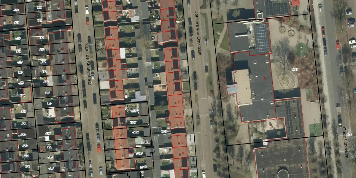 Het perceel waarop Jonkers van Ossstraat 36 staat heeft een oppervlakte van 6562 m². Dit is een zeer groot perceel. De perceeloppervlakte wordt geregistreerd door het Kadaster. Gedetailleerde informatie over de maten van dit perceel kunt u vinden in het rapport Kadastrale kaart met maatvoering van Jonkers van Ossstraat 36.