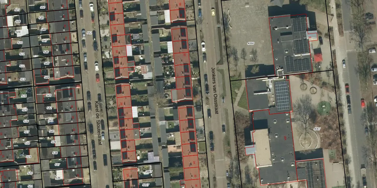 Het perceel waarop Jonkers van Ossstraat 44 staat heeft een oppervlakte van 6562 m². Dit is een zeer groot perceel. De perceeloppervlakte wordt geregistreerd door het Kadaster. Gedetailleerde informatie over de maten van dit perceel kunt u vinden in het rapport Kadastrale kaart met maatvoering van Jonkers van Ossstraat 44.