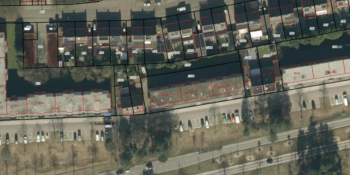 Het perceel waarop Julianalaan 48-GAR5 staat heeft een oppervlakte van 1230 m². Dit is een zeer groot perceel. De perceeloppervlakte wordt geregistreerd door het Kadaster. Gedetailleerde informatie over de maten van dit perceel kunt u vinden in het rapport Kadastrale kaart met maatvoering van Julianalaan 48-GAR5.