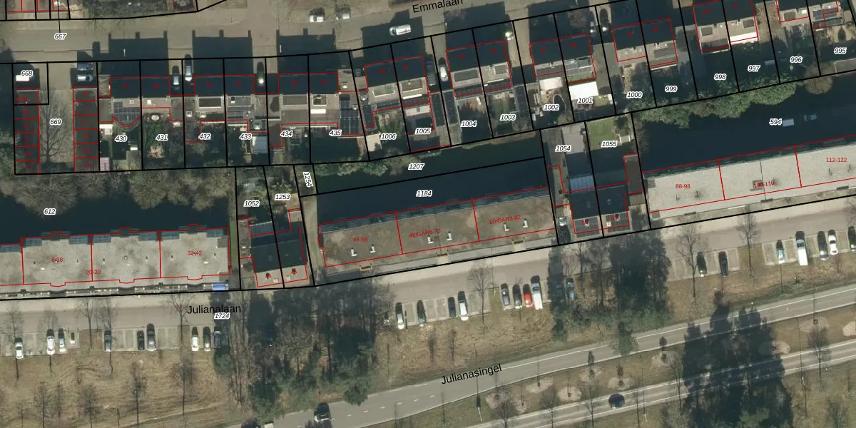 Het perceel waarop Julianalaan 48-GAR8 staat heeft een oppervlakte van 1230 m². Dit is een zeer groot perceel. De perceeloppervlakte wordt geregistreerd door het Kadaster. Gedetailleerde informatie over de maten van dit perceel kunt u vinden in het rapport Kadastrale kaart met maatvoering van Julianalaan 48-GAR8.