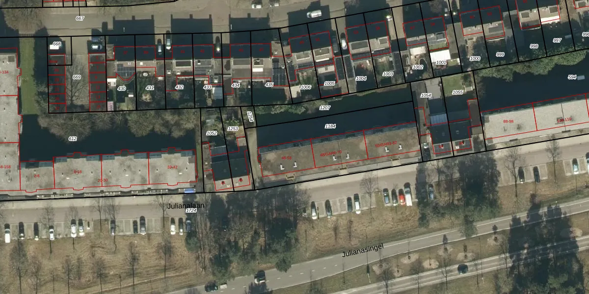 Het perceel waarop Julianalaan 48-GAR4 staat heeft een oppervlakte van 1230 m². Dit is een zeer groot perceel. De perceeloppervlakte wordt geregistreerd door het Kadaster. Gedetailleerde informatie over de maten van dit perceel kunt u vinden in het rapport Kadastrale kaart met maatvoering van Julianalaan 48-GAR4.