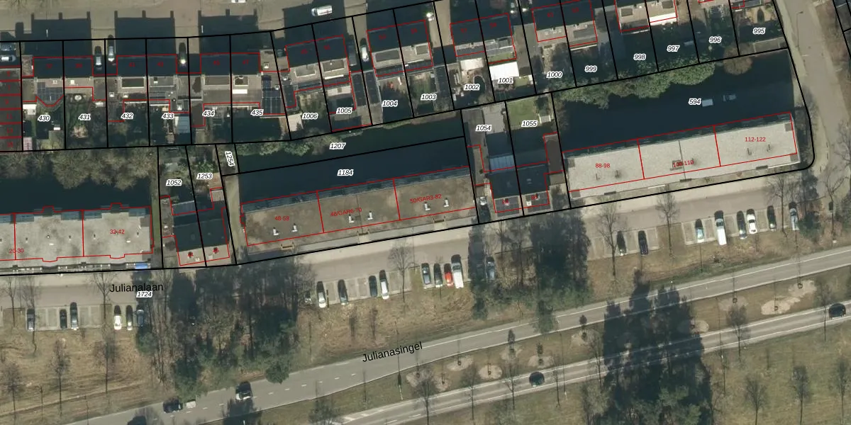 Het perceel waarop Julianalaan 76 staat heeft een oppervlakte van 1230 m². Dit is een zeer groot perceel. De perceeloppervlakte wordt geregistreerd door het Kadaster. Gedetailleerde informatie over de maten van dit perceel kunt u vinden in het rapport Kadastrale kaart met maatvoering van Julianalaan 76.