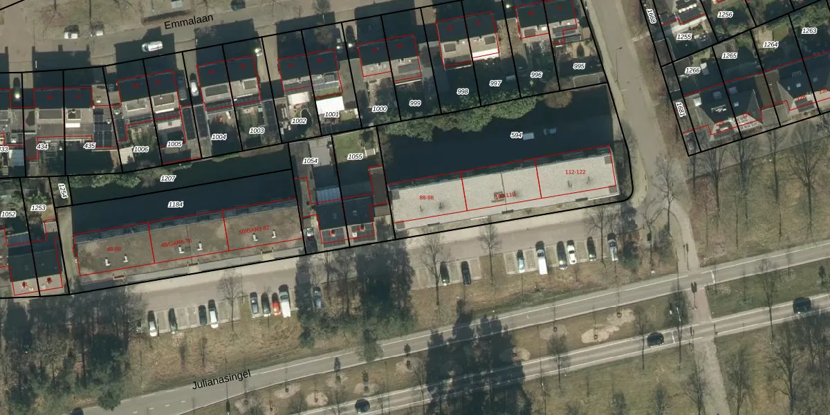 Het perceel waarop Julianalaan 90 staat heeft een oppervlakte van 1670 m². Dit is een zeer groot perceel. De perceeloppervlakte wordt geregistreerd door het Kadaster. Gedetailleerde informatie over de maten van dit perceel kunt u vinden in het rapport Kadastrale kaart met maatvoering van Julianalaan 90.