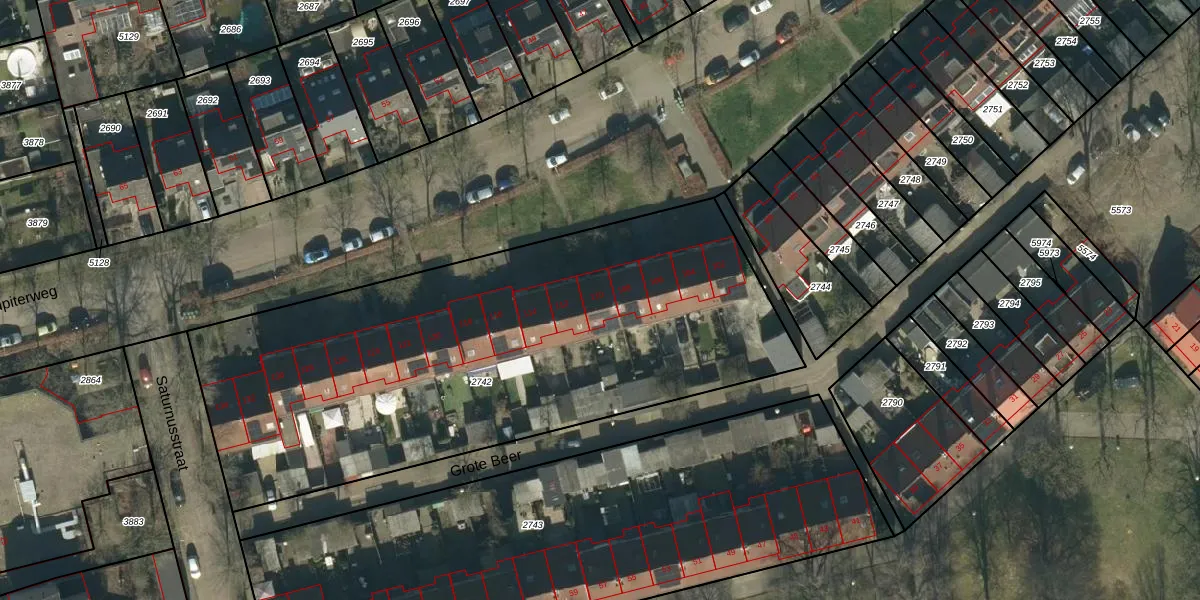 Het perceel waarop Jupiterweg 110 staat heeft een oppervlakte van 2941 m². Dit is een zeer groot perceel. De perceeloppervlakte wordt geregistreerd door het Kadaster. Gedetailleerde informatie over de maten van dit perceel kunt u vinden in het rapport Kadastrale kaart met maatvoering van Jupiterweg 110.