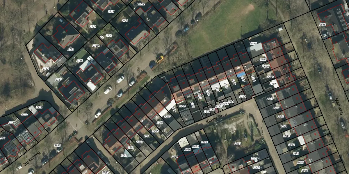 Gebruik de zoekbalk of klik op een perceel voor informatie over de adressen binnen dit perceel.