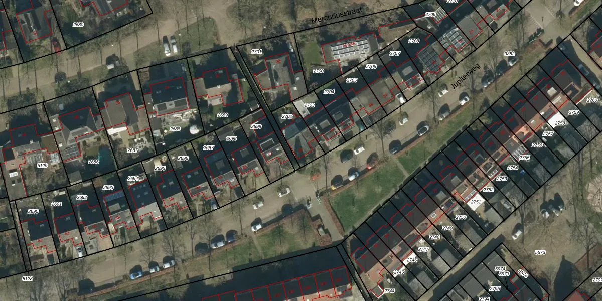 Jupiterweg 45 is gelegen op kadastraal perceel OSS00K2702. Deze kadastrale aanduiding is uniek en wordt gebruikt door het Kadaster om eigendomsrechten en andere zakelijke rechten vast te leggen. Het perceel maakt onderdeel uit van de kadastrale gemeente Oss.