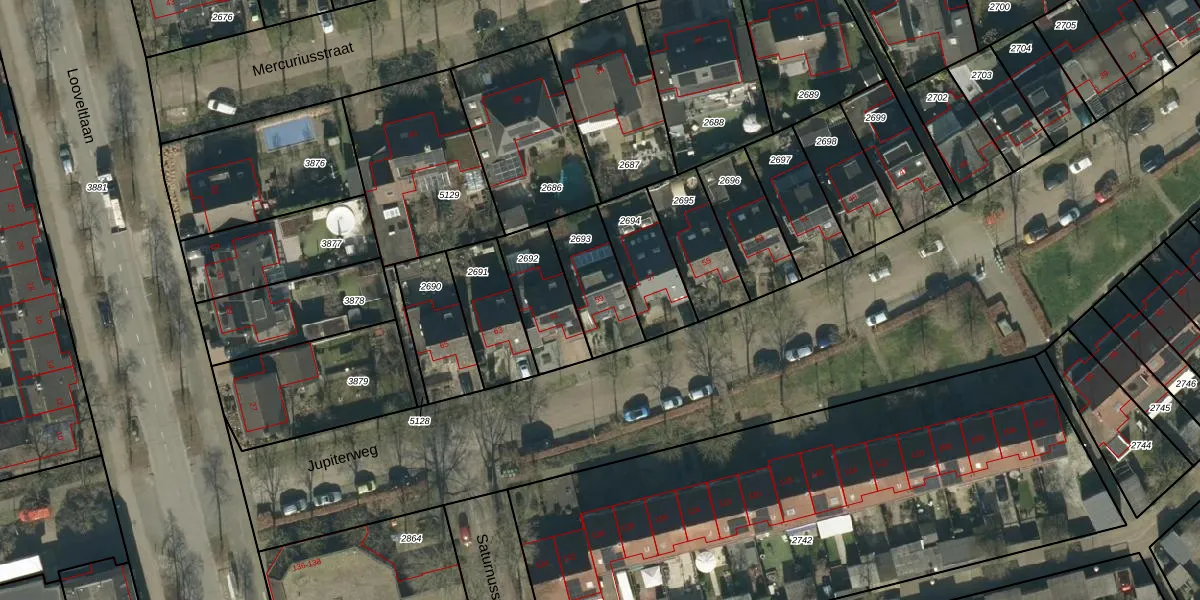 Gebruik de zoekbalk of klik op een perceel voor informatie over de adressen binnen dit perceel.