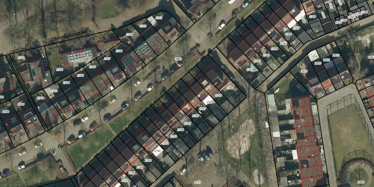 Jupiterweg 62 is gelegen op kadastraal perceel OSS00K2757. Deze kadastrale aanduiding is uniek en wordt gebruikt door het Kadaster om eigendomsrechten en andere zakelijke rechten vast te leggen. Het perceel maakt onderdeel uit van de kadastrale gemeente Oss.