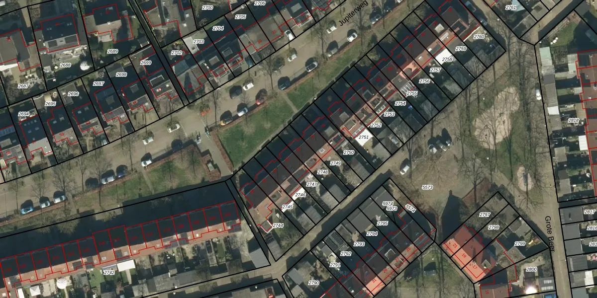 Jupiterweg 80 is gelegen op kadastraal perceel OSS00K2748. Deze kadastrale aanduiding is uniek en wordt gebruikt door het Kadaster om eigendomsrechten en andere zakelijke rechten vast te leggen. Het perceel maakt onderdeel uit van de kadastrale gemeente Oss.