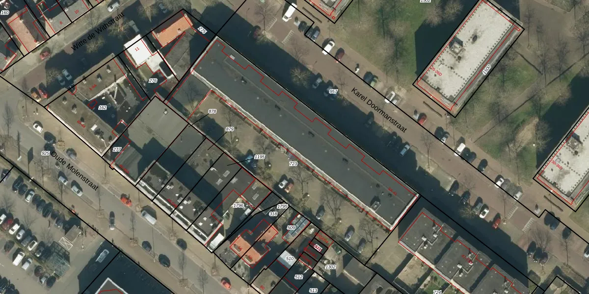 Het perceel waarop Karel Doormanstraat 35-B staat heeft een oppervlakte van 2654 m². Dit is een zeer groot perceel. De perceeloppervlakte wordt geregistreerd door het Kadaster. Gedetailleerde informatie over de maten van dit perceel kunt u vinden in het rapport Kadastrale kaart met maatvoering van Karel Doormanstraat 35-B.