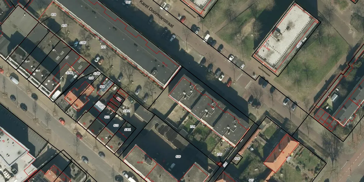 Het perceel waarop Karel Doormanstraat 49 staat heeft een oppervlakte van 1505 m². Dit is een zeer groot perceel. De perceeloppervlakte wordt geregistreerd door het Kadaster. Gedetailleerde informatie over de maten van dit perceel kunt u vinden in het rapport Kadastrale kaart met maatvoering van Karel Doormanstraat 49.